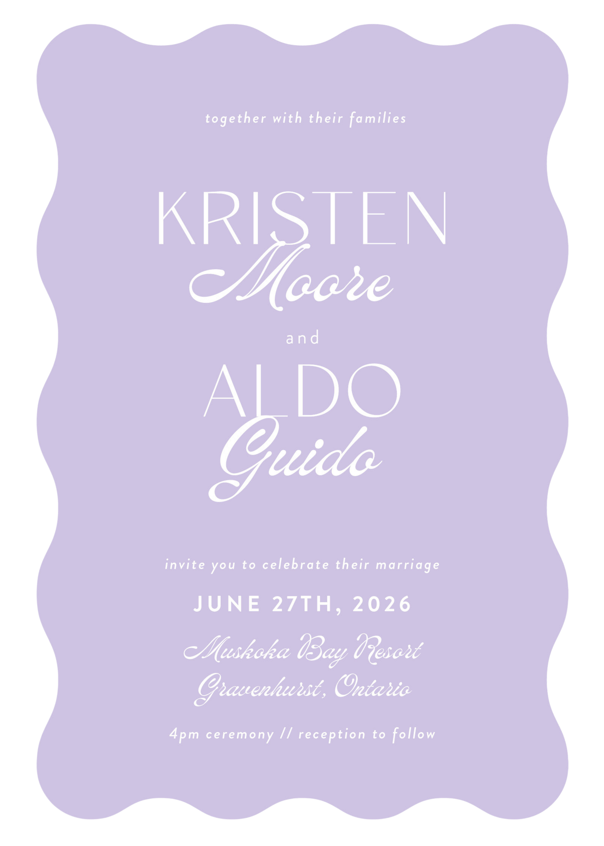 If you are planning to stay at Muskoka Bay Resort for the wedding, please book your room before April 1st by calling (855) 249-8390 and referencing “The Moore Guido Wedding”. Click here for more details.